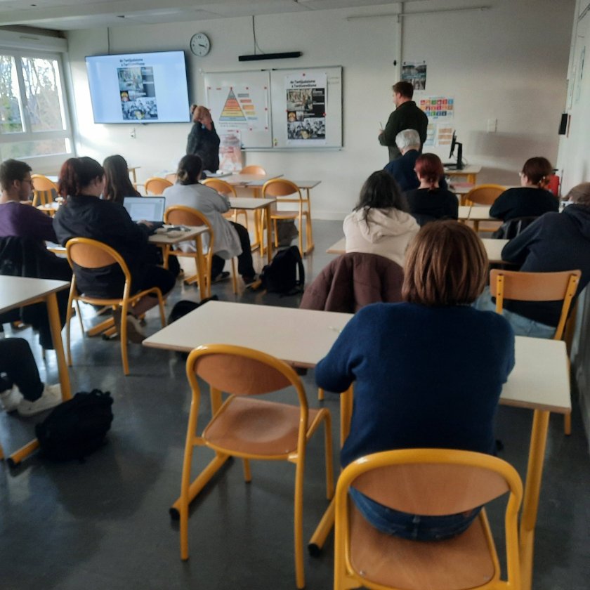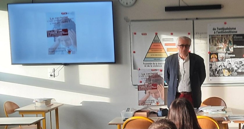 En novembre 2025, MRAP Yonne est intervenu dans une classe de terminale d’un collège afin d’animer une rencontre sur le thème « Lois et racisme ». Cette intervention s’est déroulée en présence de Maître Jean-Louis Lagarde, qui a apporté son expertise juridique pour éclairer les élèves sur le cadre légal de la lutte contre le racisme en France.
