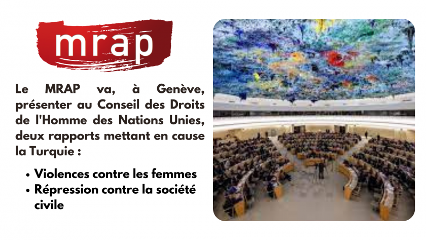 Le MRAP va, à Genève, présenter au Conseil des Droits de l’Homme des Nations Unies, deux rapports mettant en cause la Turquie :